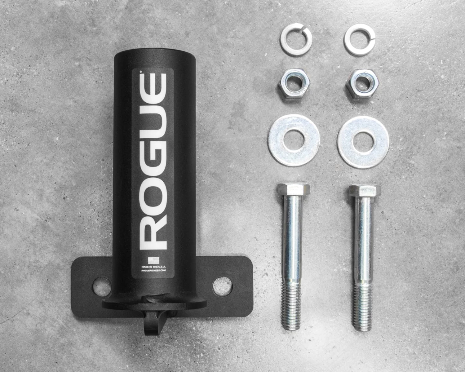 A convenient, easy-to-mount accessory that allows you to store a barbell directly on the exterior of an existing Rogue rack, rig, or squat stand. The Single Bar Holder is compatible with both our Infinity and Monster Lite Series, with 5/8โ hardware and mounting plate holes 4โ on center. Once installed, almost any standard Olympic barbell can be placed sleeve-first into the Bar Holderโs 7โ tall steel tube, creating a secure storage solution that wonโt damage the barโs knurling.