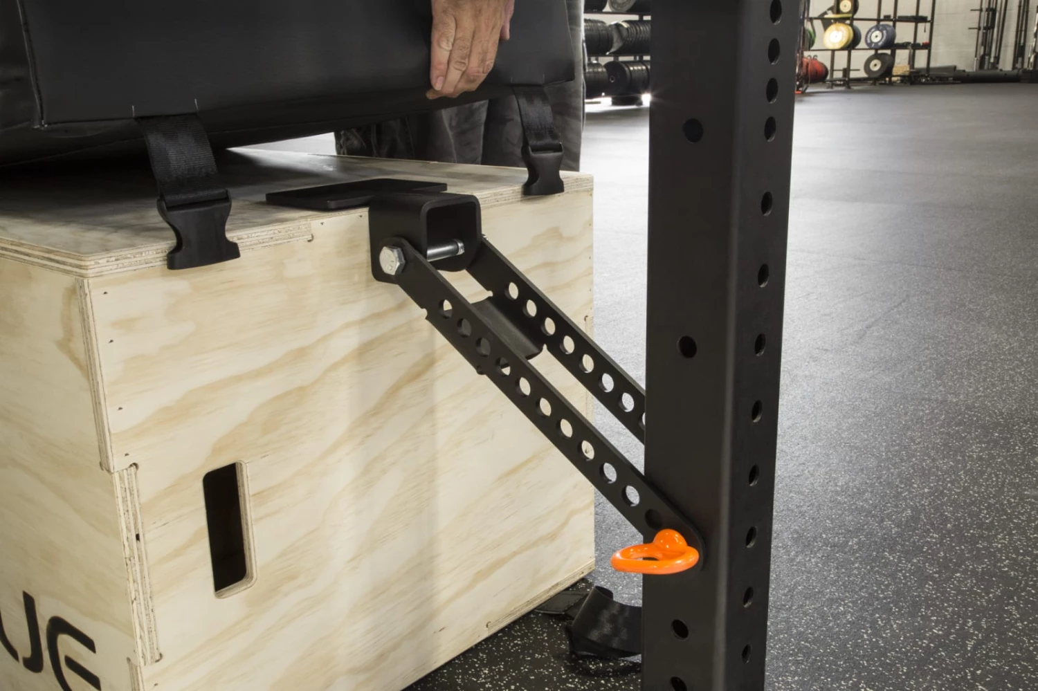 *By adding the optional Echo GHD Stabilizer Kit to an order, you will have an additional method for reducing any unwanted movement or rocking of the Echo GHD during use. The adjustable kit can be mounted to any Monster Lite upright, or to a wall using the Rogue mounting accessory The Stripยฎ. There are 12 adjustment settings 1″ on center, but the angle at which you set up the kit can allow for many more custom adjustments. A detent pin is included.