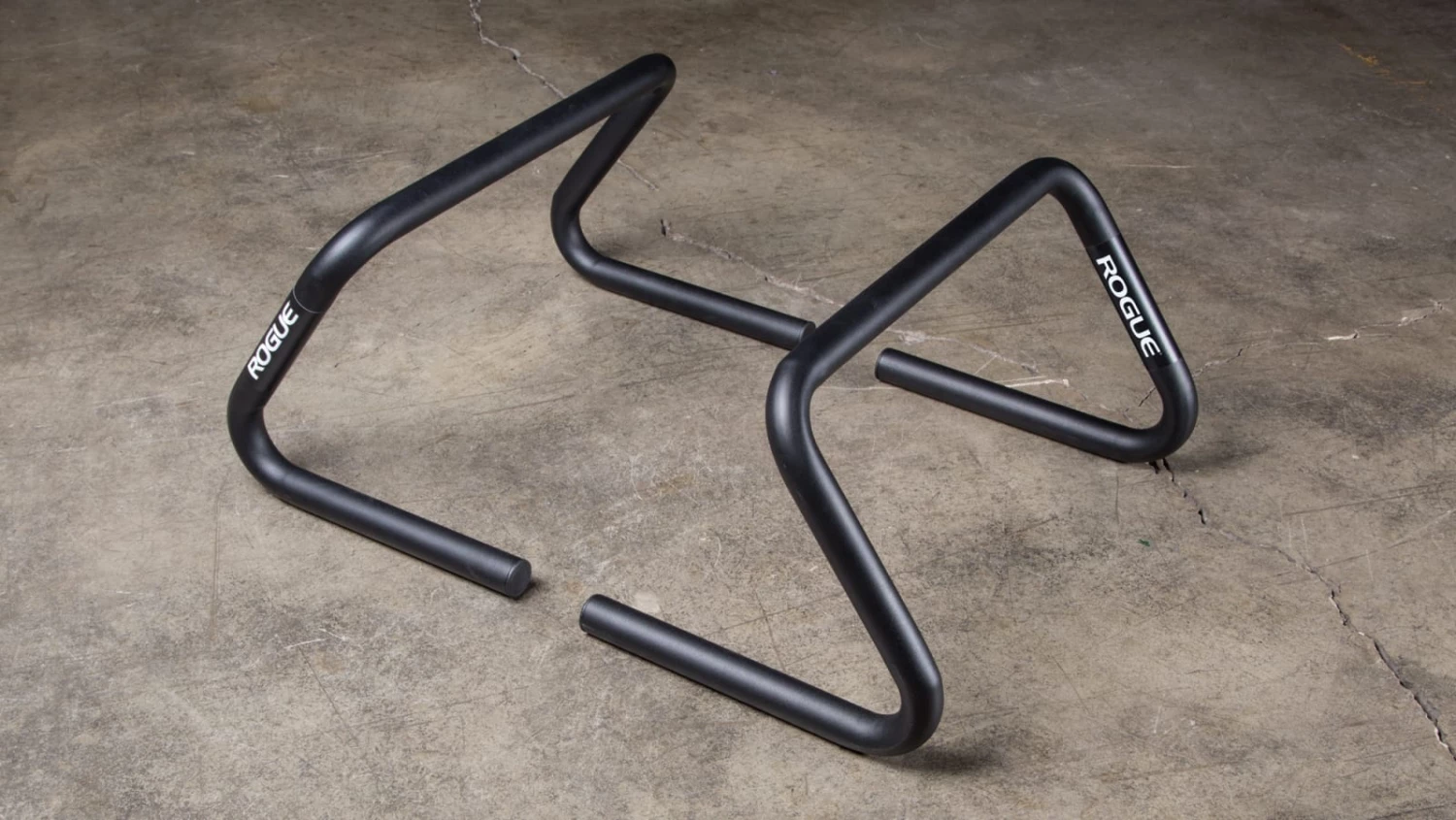 The ends of each 23.5″ long parallette bar feature caps for a finished, clean look, and a Rogue logo sticker is included on each unit. Along with traditional bodyweight / gymnastic movements, Rogue Formed Parallettes can alternately be used as small hurdles for footwork / agility drills.