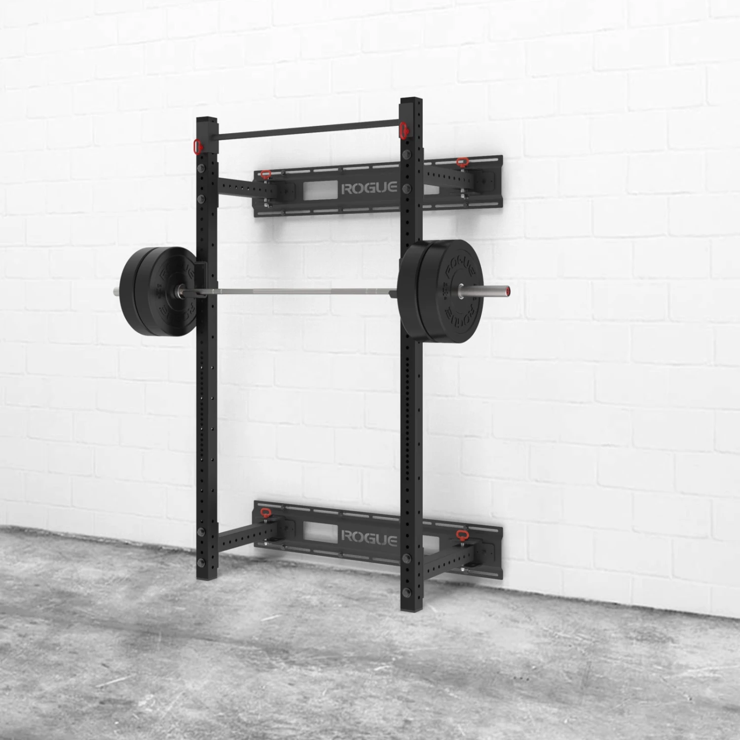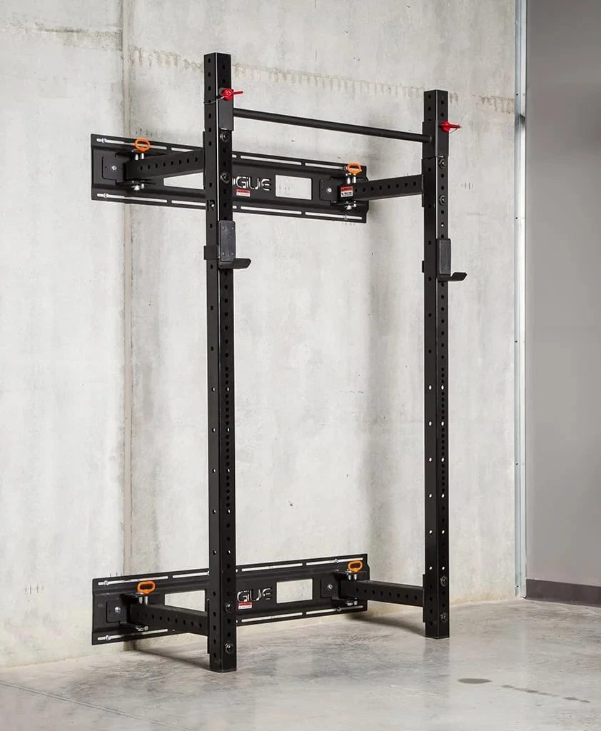 The central design challenge with the Fold Back Rack was to come up with a wall-mount unit that could be folded inward or outward for optimal space efficiency, yet still offer the sturdiness of our standard Monster Lite power racks. To achieve this, our engineering team developed a unique hinge-and-pin system that is both easy to install and rock solid. In use as a squat stand, pull up rig, or power rack, the feel is miles beyond lighter fold-back setups that use thinner steel.