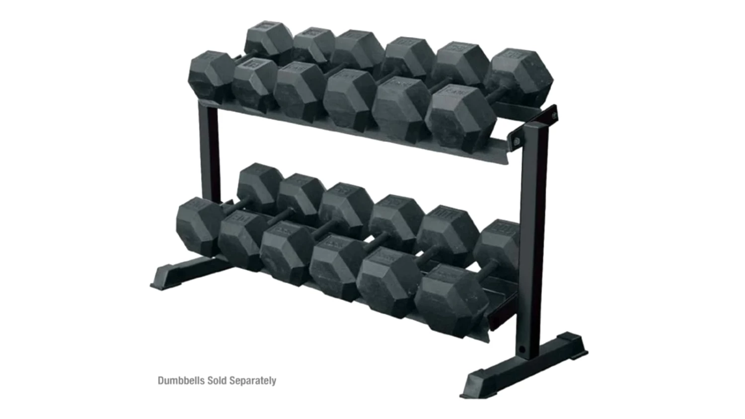 Note: The amount of dumbbells the trays can hold may vary based on the dumbbells being stored